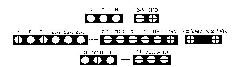 火警傳輸A、火警傳輸B:連接火警傳輸設(shè)備通訊總線端子(選配);