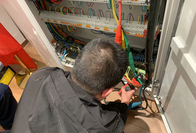 ①直觀檢查配電箱(盤)的設置、材質、安裝質量、柜內配線、接線端子連接、接地及防火措施等。